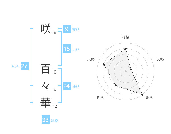 咲 百々華さんの総格は33画の4点!