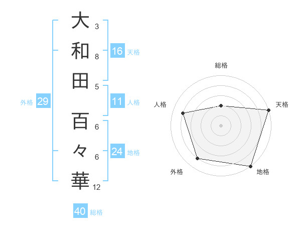 大和田 百々華さんを姓名の画数から五運を鑑定