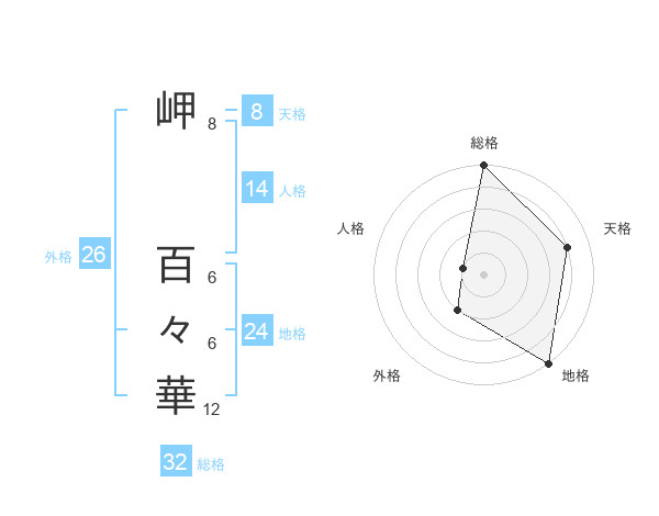 岬 百々華さんの総格は32画の5点!