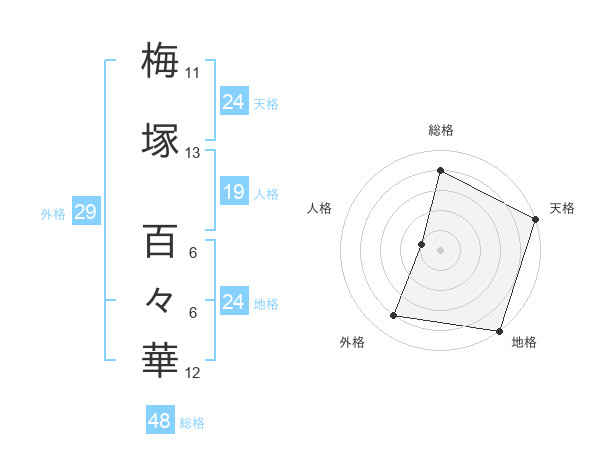 梅塚 百々華さんの天格は24画の5点!