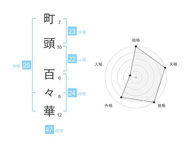 町頭 百々華さんを姓名の画数から五運を鑑定