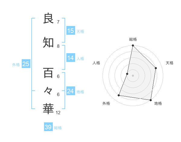 良知 百々華さんの総格は39画の5点!