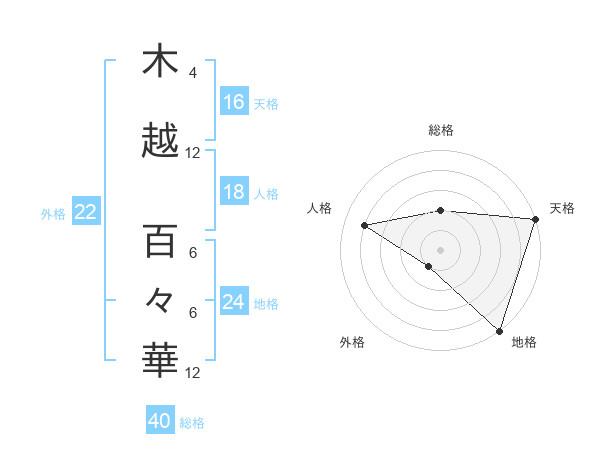 木越 百々華さんの外格は22画の1点!