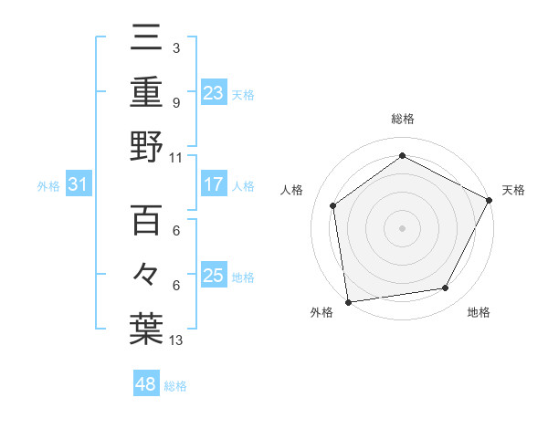 三重野 百々葉さんを姓名の画数から五運を鑑定