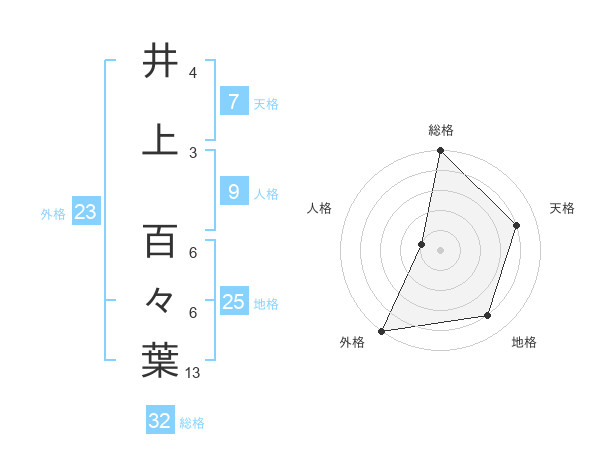 井上 百々葉さんを姓名の画数から五運を鑑定