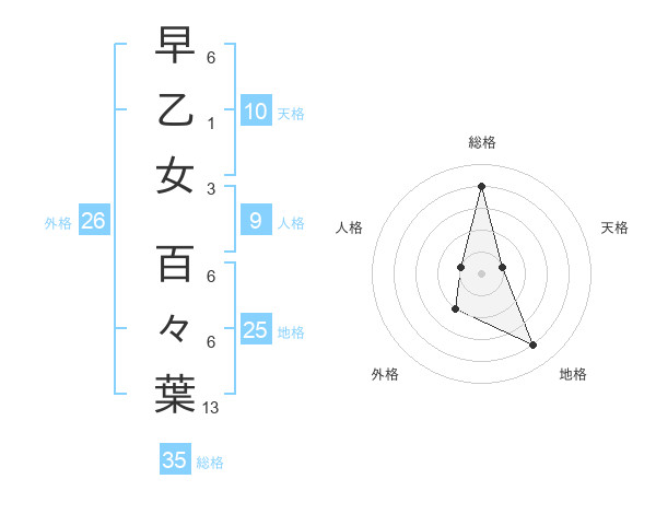 早乙女 百々葉さんを姓名の画数から五運を鑑定
