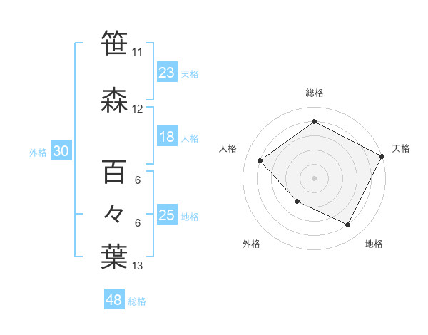 笹森 百々葉さんを姓名の画数から五運を鑑定