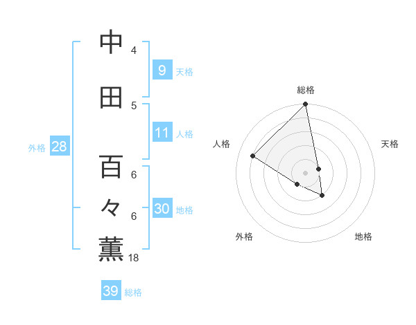 中田 百々薫さんを姓名の画数から五運を鑑定