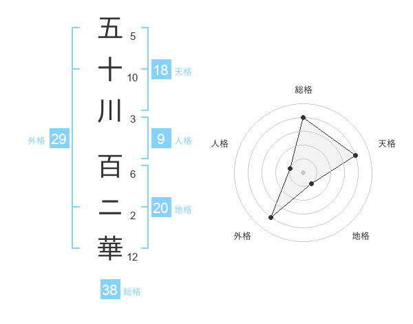 五十川 百ニ華さんを姓名の画数から五運を鑑定