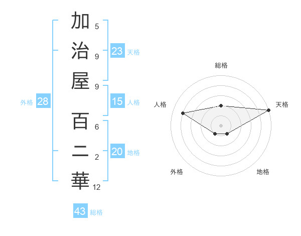 加治屋 百ニ華さんを姓名の画数から五運を鑑定