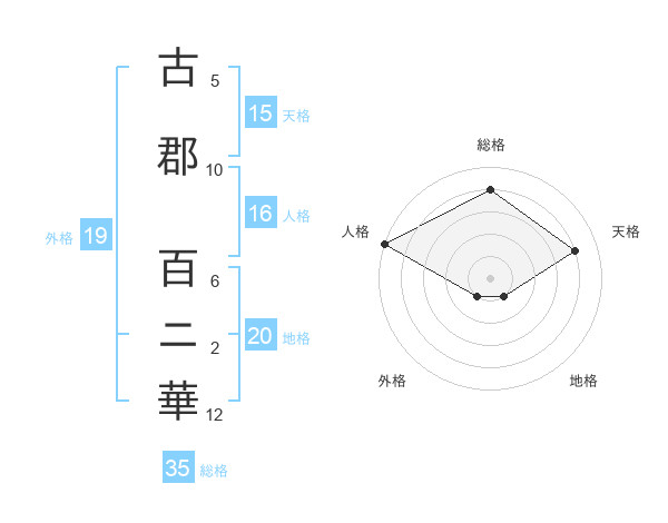 古郡 百ニ華さんを姓名の画数から五運を鑑定