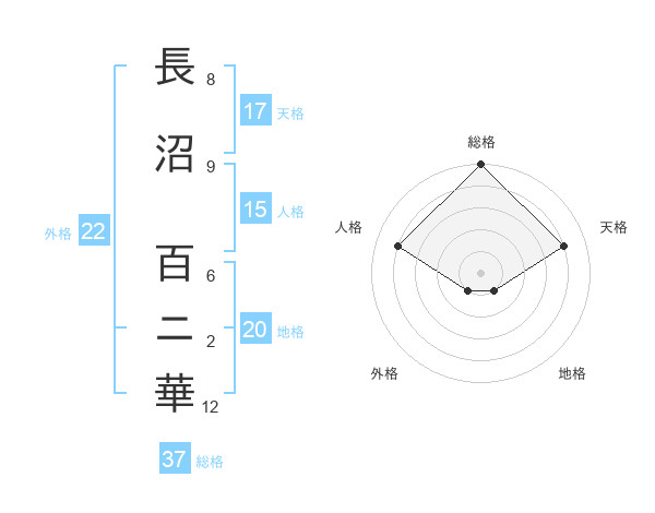 長沼 百ニ華さんを姓名の画数から五運を鑑定