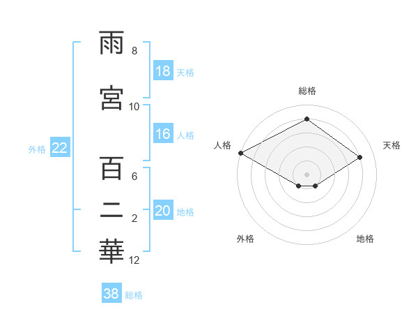 雨宮 百ニ華さんを姓名の画数から五運を鑑定