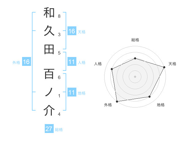和久田 百ノ介さんの天格は16画の5点!