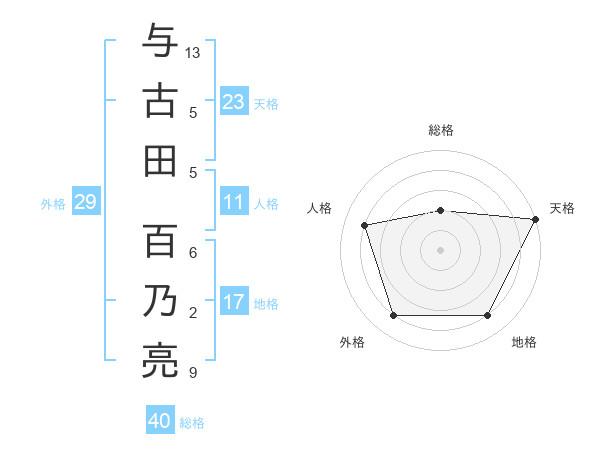与古田 百乃亮さんを姓名の画数から五運を鑑定