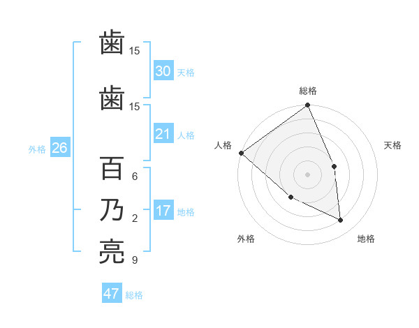 歯歯 百乃亮さんの総格は47画の5点!