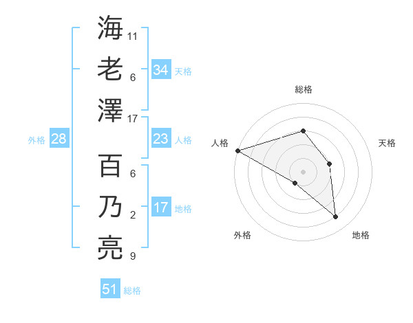 海老澤 百乃亮さんを姓名の画数から五運を鑑定