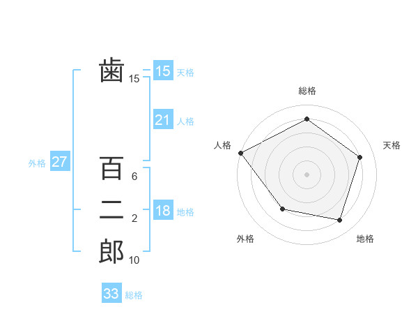 歯 百二郎さんの総格は33画の4点!