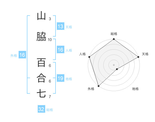 山脇 百合七さんを姓名の画数から五運を鑑定