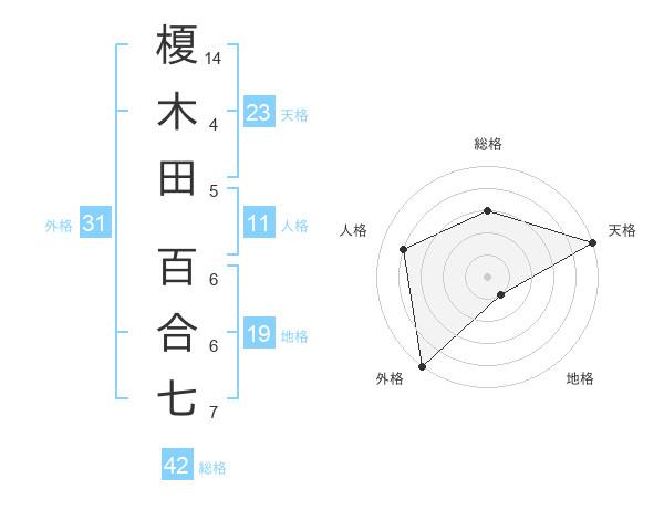 榎木田 百合七さんを姓名の画数から五運を鑑定