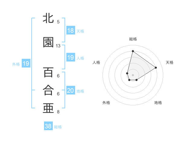 北園 百合亜さんを姓名の画数から五運を鑑定