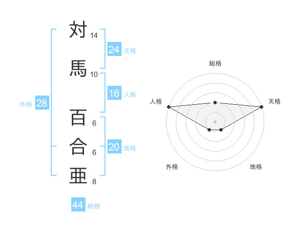 対馬 百合亜さんの地格は20画の1点!