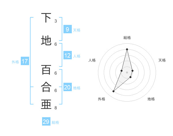 下地 百合亜さんの総格は29画の4点