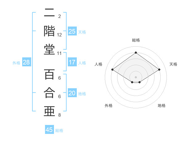 二階堂 百合亜さんを姓名の画数から五運を鑑定