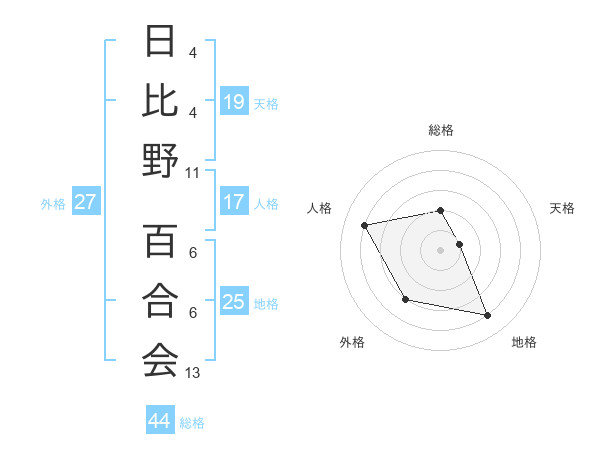 日比野 百合会さんを姓名の画数から五運を鑑定
