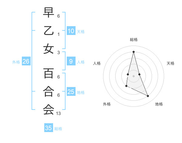 早乙女 百合会さんの総格は35画の4点