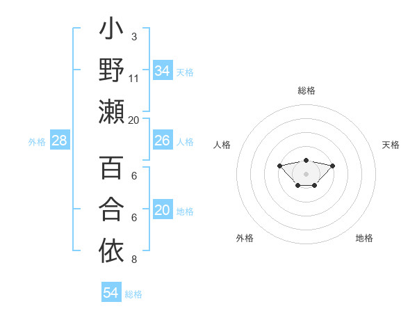 小野瀬 百合依さんを姓名の画数から五運を鑑定