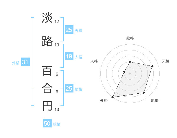 淡路 百合円さんの総格は50画の2点