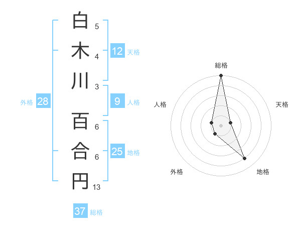 白木川 百合円さんの総格は37画の5点!