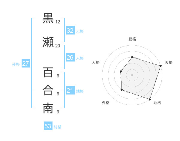 黒瀬 百合南さんを姓名の画数から五運を鑑定