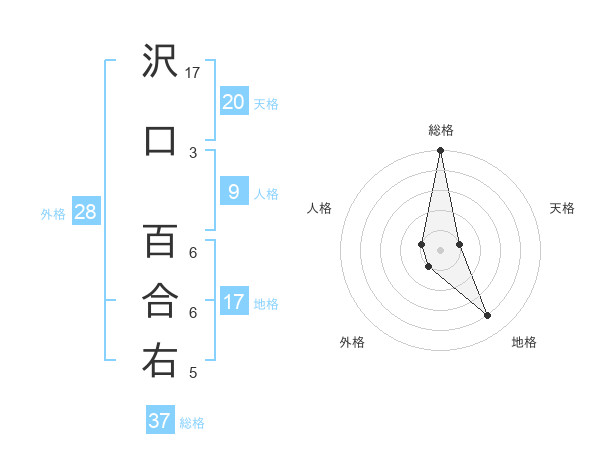 沢口 百合右さんを姓名の画数から五運を鑑定
