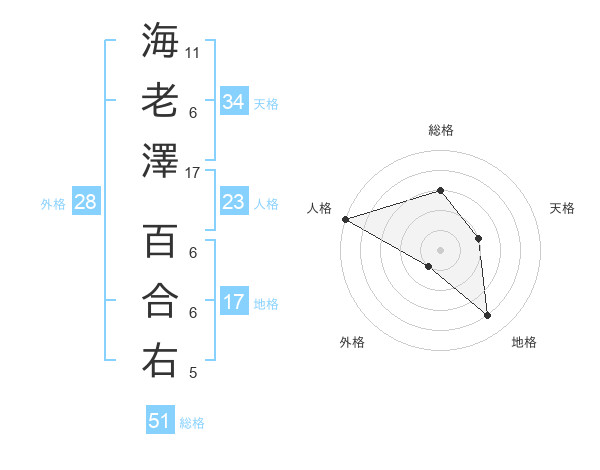 海老澤 百合右さんの総格は51画の3点!