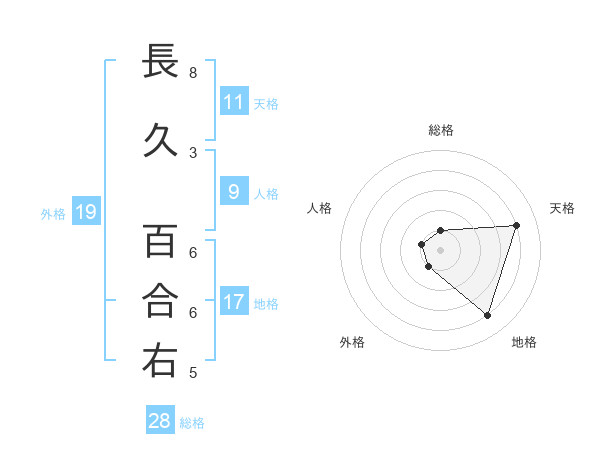 長久 百合右さんの外格は19画の1点!