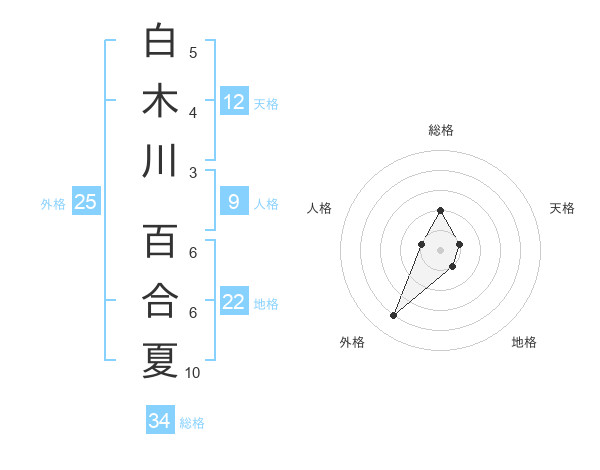 白木川 百合夏さんを姓名の画数から五運を鑑定