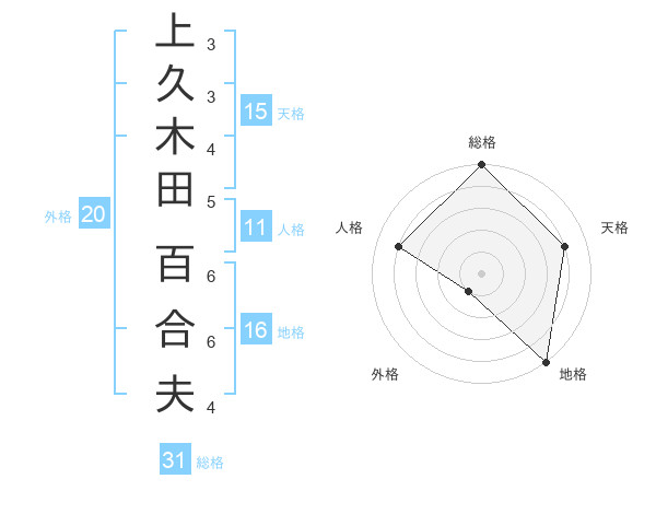 上久木田 百合夫さんを姓名の画数から五運を鑑定