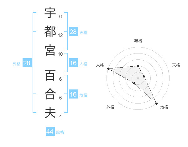 宇都宮 百合夫さんの総格は44画の2点!
