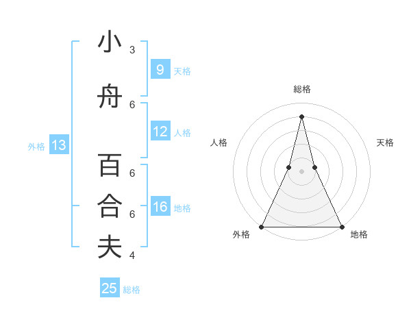 小舟 百合夫さんを姓名の画数から五運を鑑定