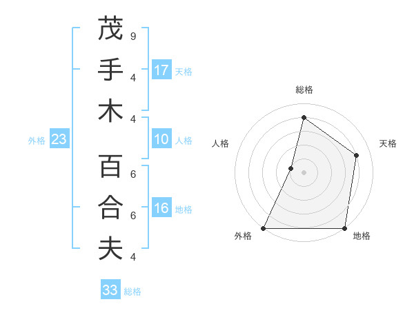 茂手木 百合夫さんの外格は23画の5点!