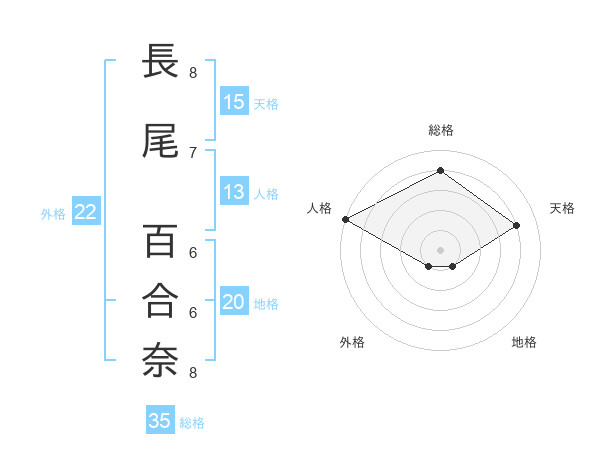 長尾 百合奈さんを姓名の画数から五運を鑑定