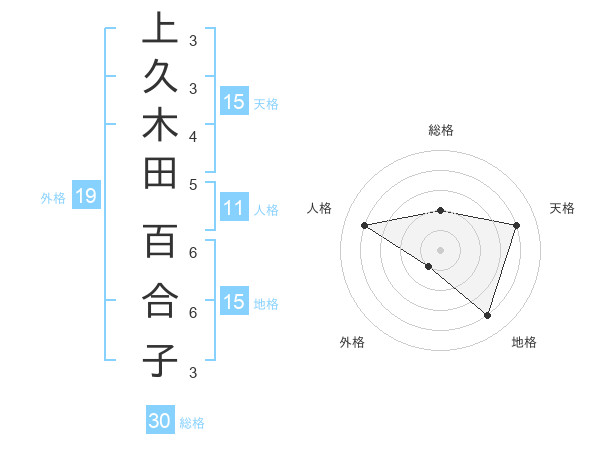上久木田 百合子さんを姓名の画数から五運を鑑定