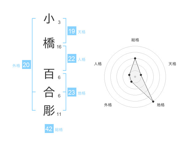 小橋 百合彫さんの総格は42画の3点!
