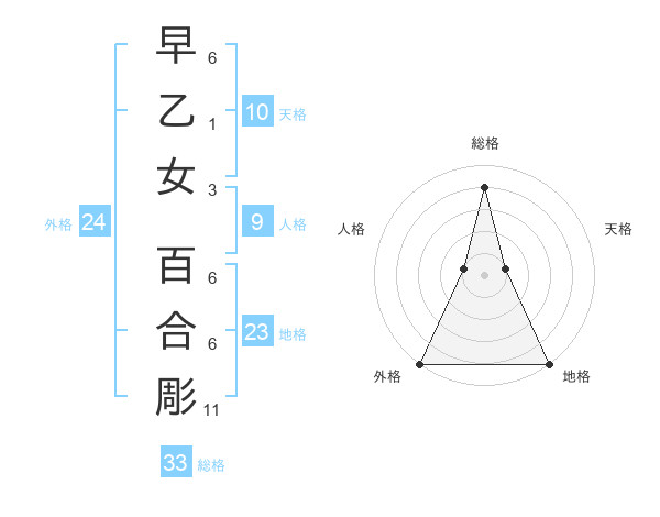 早乙女 百合彫さんを姓名の画数から五運を鑑定