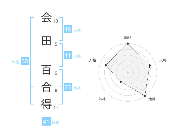 会田 百合得さんの総格は41画の5点!