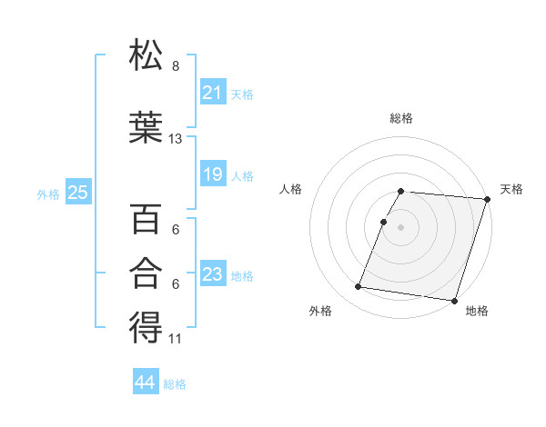 松葉 百合得さんの地格は23画の5点!