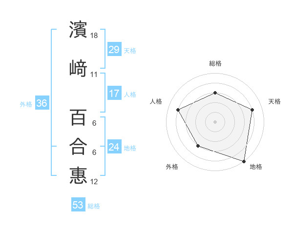 濱﨑 百合惠さんの総格は53画の3点!