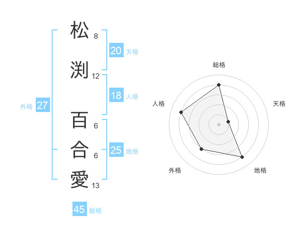 松渕 百合愛さんの総格は45画の4点!